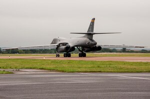 A B-1B Lancer from the 7th Bomb Wing, Dyess Air Force Base, Texas, Air Force Global Strike Command, taxis down the runway on Sep. 5, 2016 as the first day of participation in Exercise Ample Strike 2016, an annual Czech Republic-led exercise with 300 participants from 18 countries scheduled for Sept.